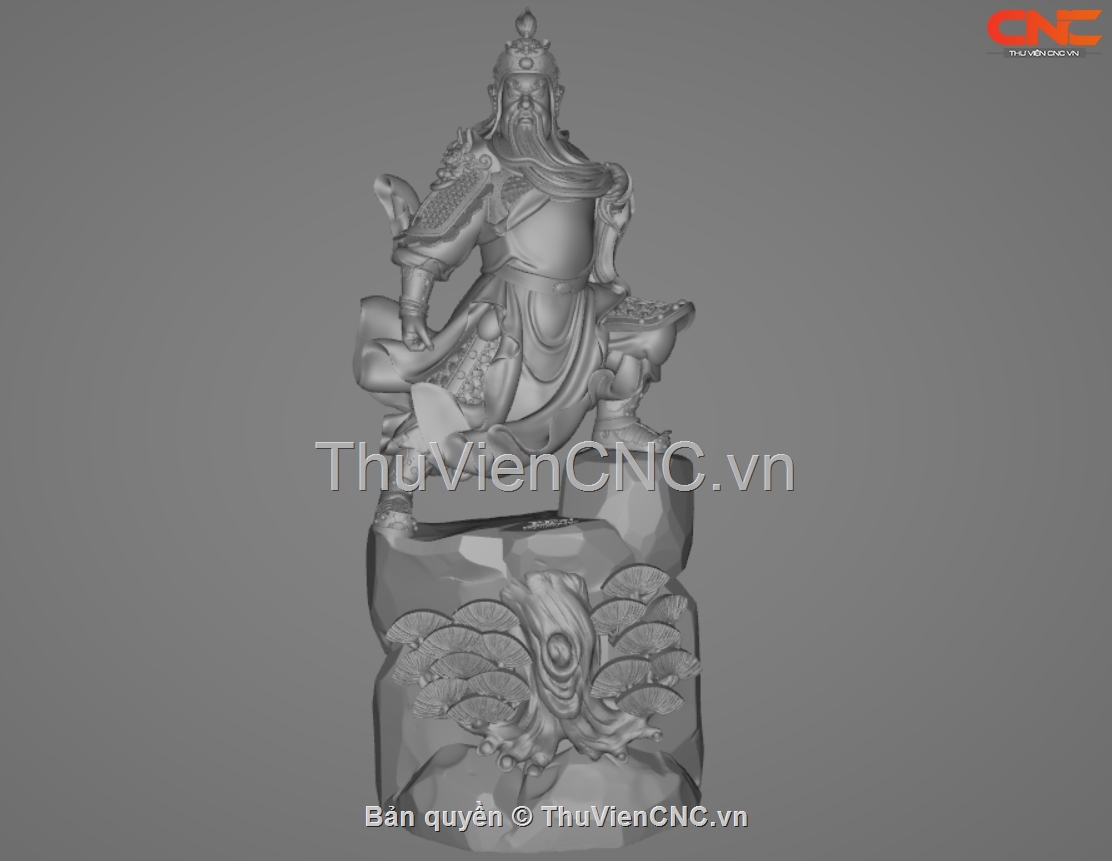 Mẫu file CNC Quan Công đứng trên đế tùng, tượng trưng cho khí chất trung nghĩa và sự trường tồn. Đường nét chạm khắc tinh xảo, tỉ lệ chuẩn, file STL tương thích với ArtCAM, Aspire. Phù hợp khắc gỗ.