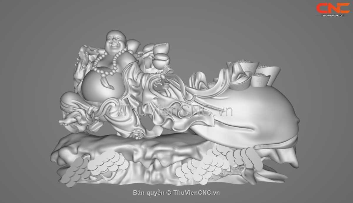Mẫu file CNC Thần Tài kéo bao tiền, chi tiết sắc nét, file STL xuất dao sẵn. Tương thích ArtCAM, Aspire, khắc gỗ, composite, resin hoặc in 3D – mang biểu tượng tài lộc, vận may và thịnh vượng.