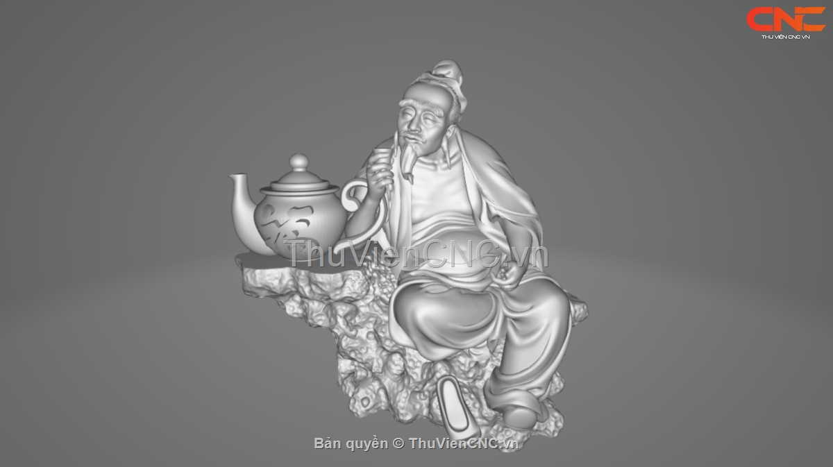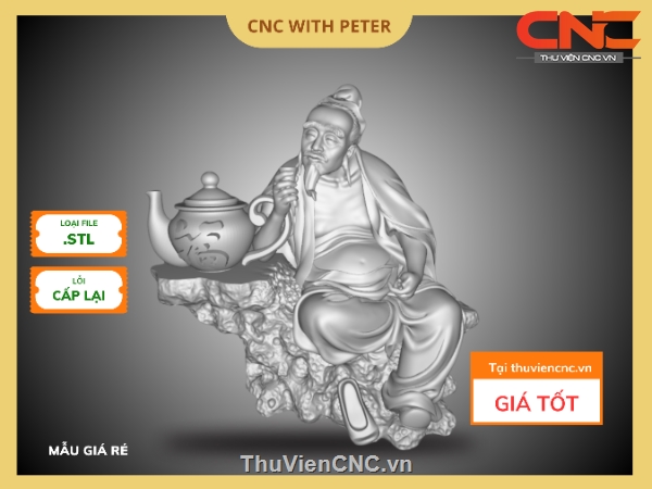 Mẫu file CNC Thần Trà, tạo hình thanh tịnh và tao nhã, biểu trưng cho tinh thần thưởng trà và sự bình an. File STL chi tiết cao, xuất dao sẵn, tương thích ArtCAM, Aspire – phù hợp khắc gỗ, composite,