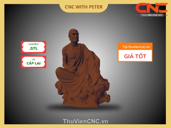 Mẫu file CNC Vị La Hán ngồi thiền trên đá, chi tiết , đường khắc mềm mại, phù hợp khắc cnc và in 3d. File STL3D, test thực tế trên máy CNC 3 trục, tương thích đa số phần mềm hỗ trợ model 3d