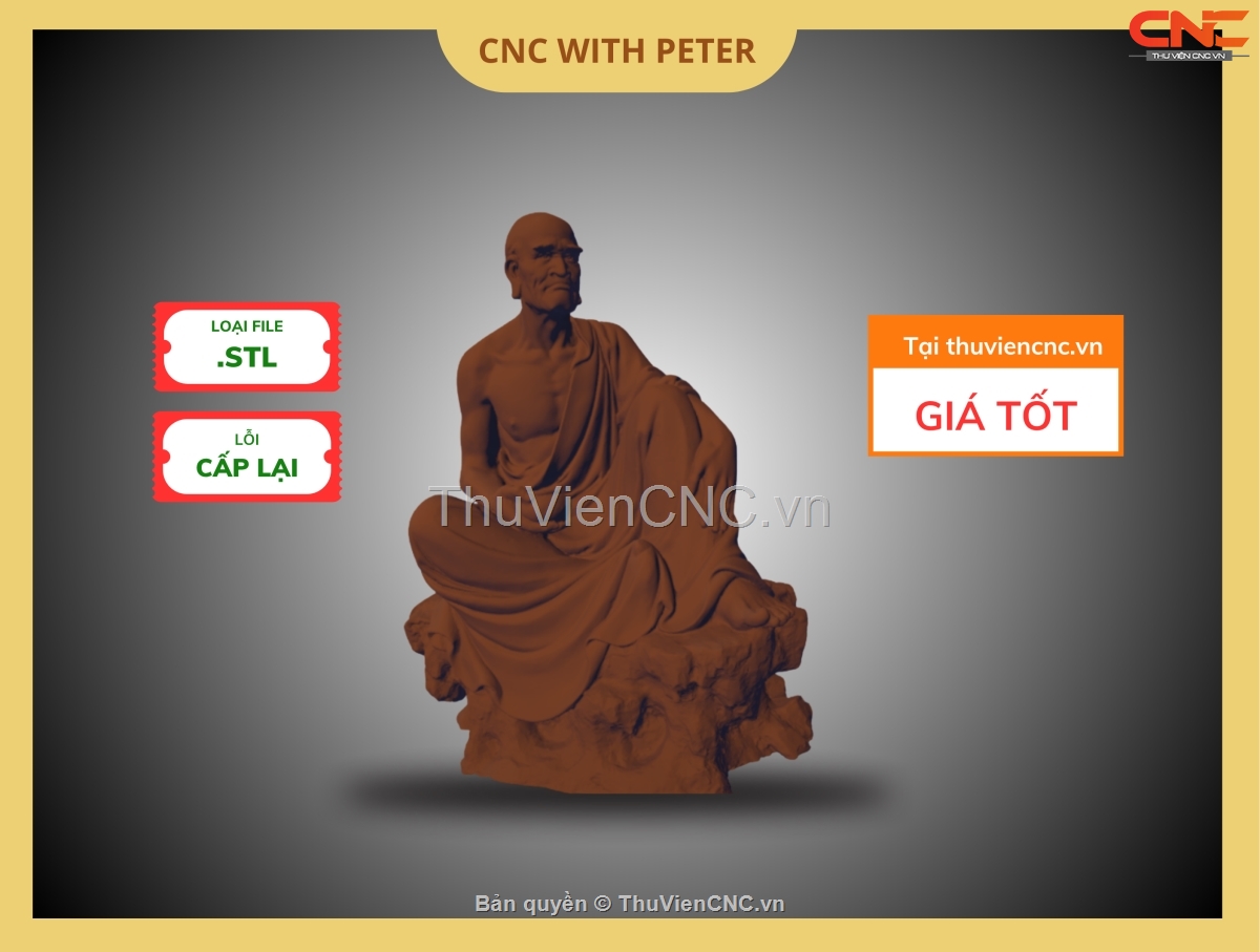 File CNC Vị La Hán ngồi thiền trên đá được thiết kế tỉ mỉ, thể hiện thần thái an nhiên, tĩnh tại. Đường nét tinh tế, bố cục cân đối, phù hợp làm tượng trưng bày, tượng thờ hoặc decor phong thủy trong không gian tâm linh.