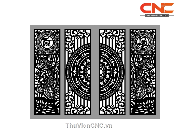 File cổng 4 cánh tài lộc cá chép dxf