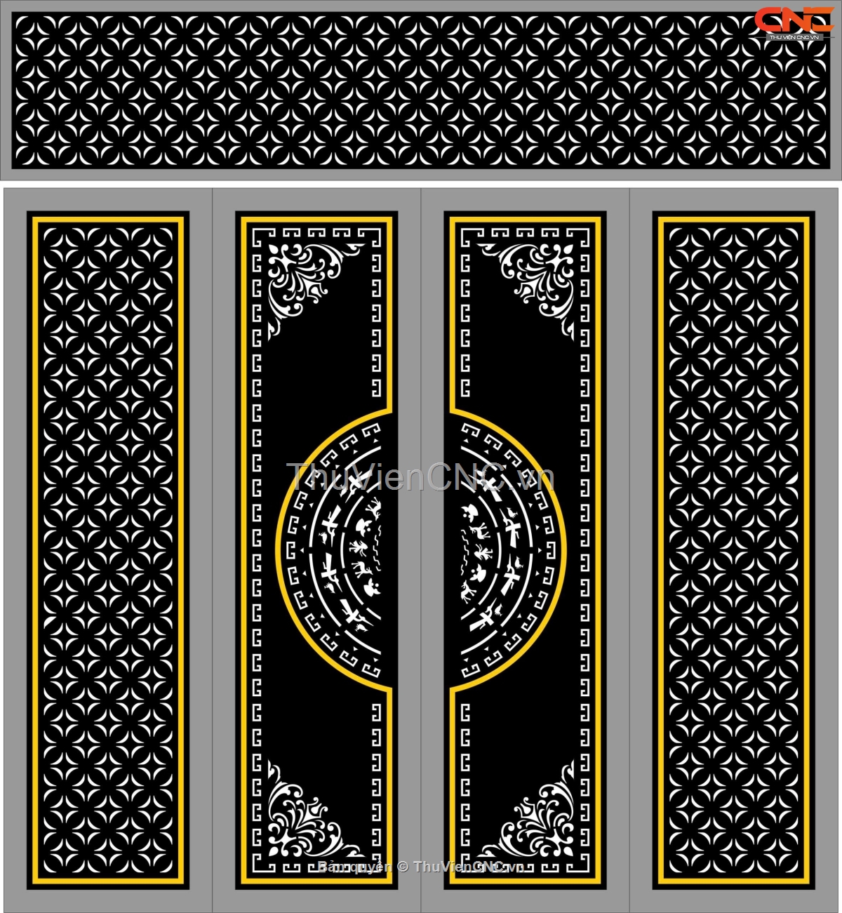 File dxf file cad cổng 4 cánh trống đồng cnc đẹp