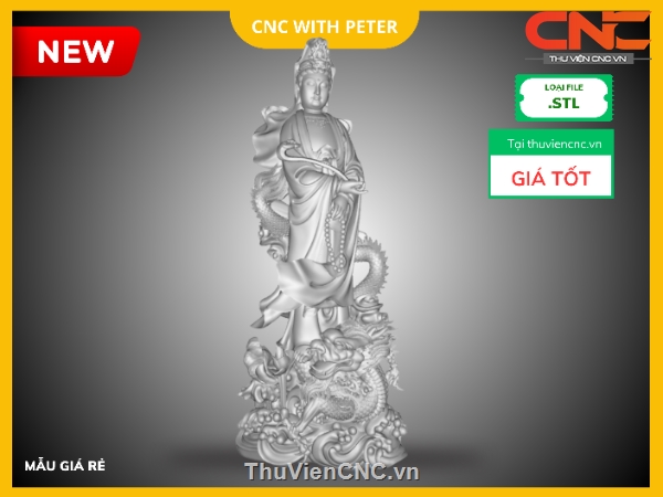 File STL Quan Âm Cưỡi Rồng CNC, mẫu tượng Phật 3D chi tiết cao, thiết kế tinh xảo, xuất dao sẵn, tương thích ArtCAM, Aspire – tối ưu cho khắc gỗ CNC và sản xuất thương mại.