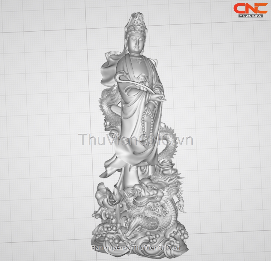 File STL Quan Âm Cưỡi Rồng CNC – Tượng Phật 3D Khắc Gỗ Chi Tiết Cao