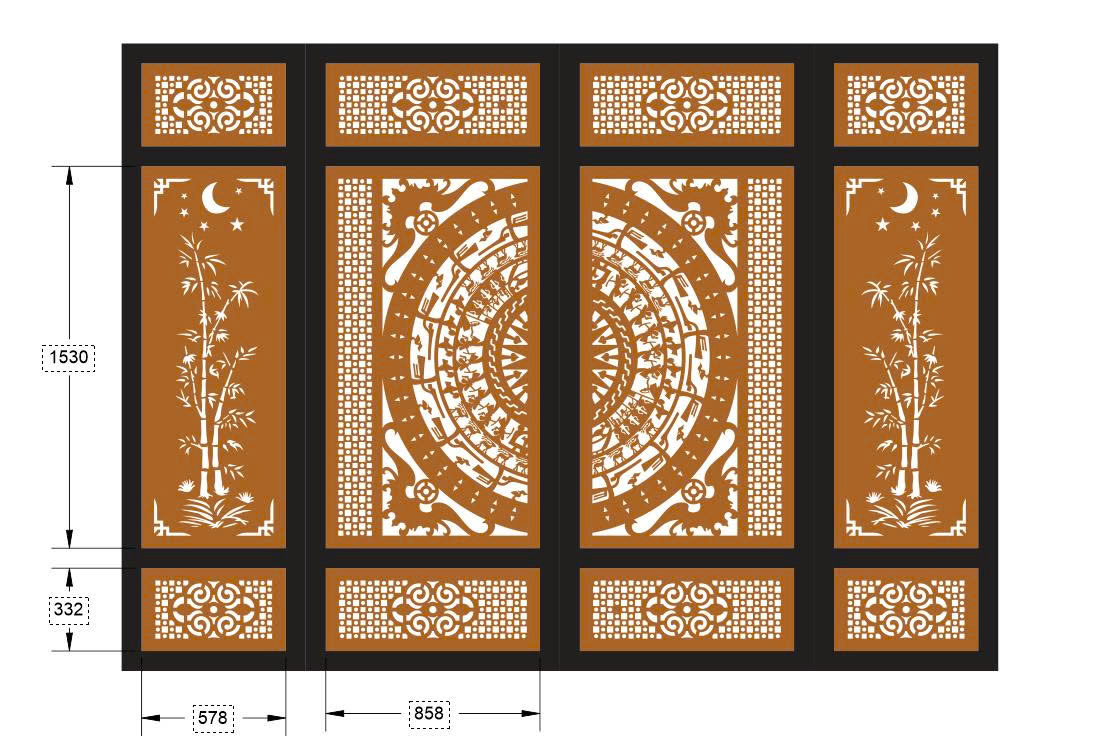 Mẫu 2d mẫu cnc cổng 4 cánh dxf