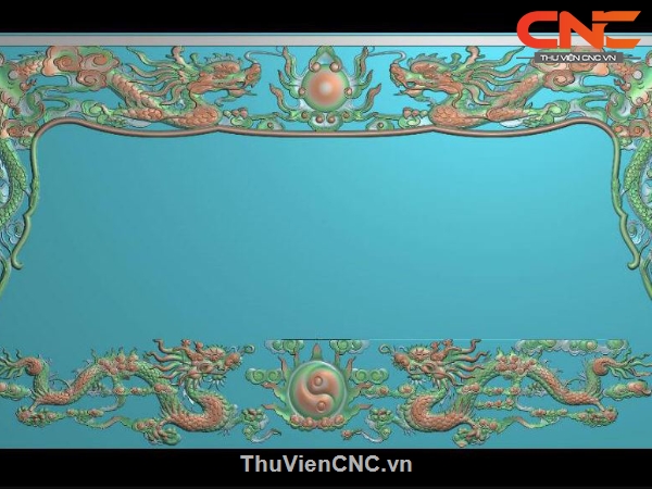 Mẫu phù điêu 3D chất lượng cao gồm hai phần: khung vòm trên và dải hoa văn dưới. Các chi tiết như vảy rồng, mây và ngọn lửa được xử lý trục Z mượt mà, đảm bảo độ nổi khối và sắc nét khi gia công thực tế.