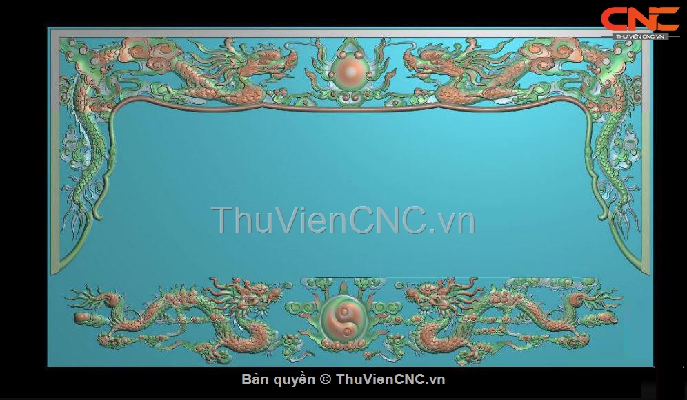 File thiết kế CNC 3D chạm nổi họa tiết rồng chầu mặt nguyệt và thái cực. Đường nét sắc sảo, tối ưu cho máy đục gỗ mỹ nghệ và đồ thờ cúng.