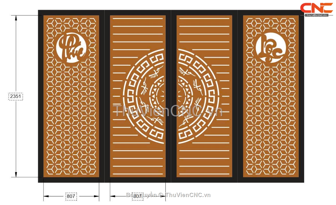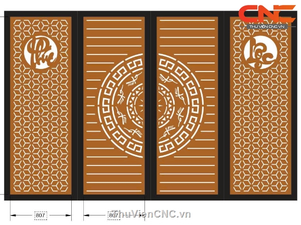 Mẫu cnc cổng 4 cánh phúc lộc