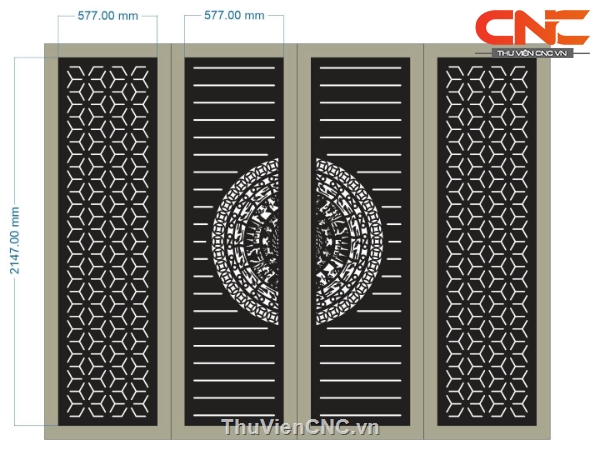 Mẫu cnc cổng 4 cánh trống đồng