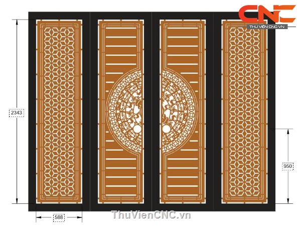 Mẫu cnc cổng 4 cánh trống đồng kết hợp bông tuyết