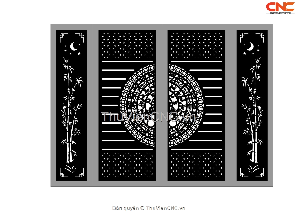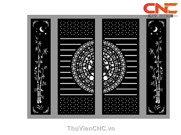 Mẫu cnc cổng 4 cánh trúc trống đồng