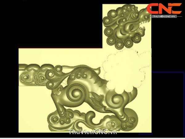 File thiết kế CNC tay ghế (tay ngai) chạm nổi con Nghê vờn mây. Đường nét uy dũng, tối ưu cho gia công đục CNC các bộ bàn ghế salon gỗ mỹ nghệ truyền thống.