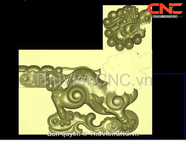 Mẫu 3D chuyên dụng làm tay vịn cho bàn ghế phòng khách. Thiết kế bóc tách chi tiết phần đầu và thân Nghê cưỡi mây giúp tối ưu tối đa độ sâu trục Z khi chạy máy, đảm bảo linh vật lên khối oai phong, sắc nét nhất.