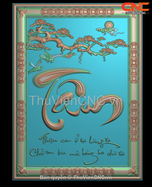 Mẫu cnc tranh chữ tâm đứng đẹp