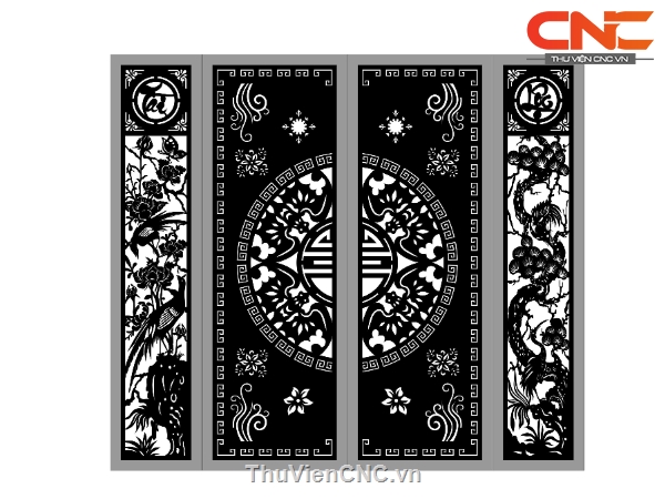 Mẫu cổng 4 cánh tài lộc tùng cúc trúc mai trúc tùng cnc