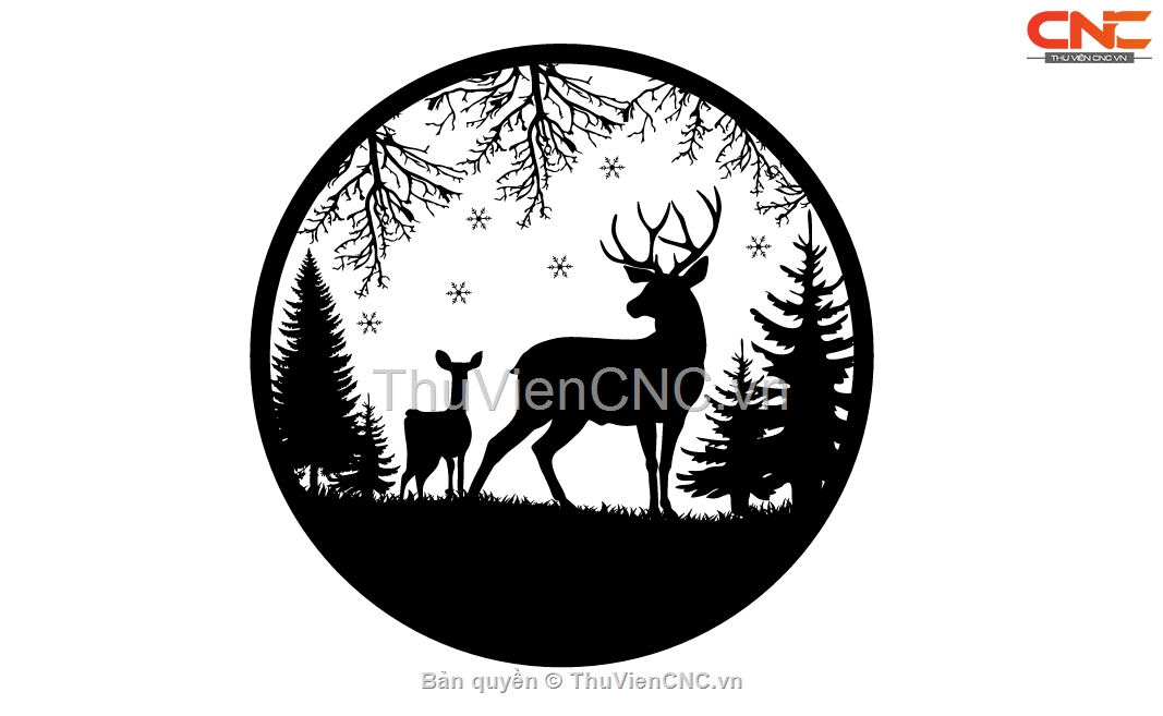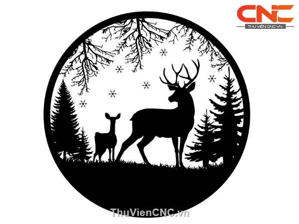Mẫu trang trí hình cây và hươu cnc