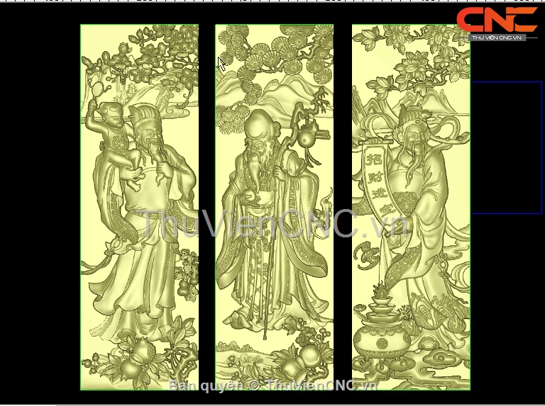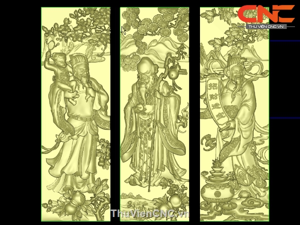 Mẫu tranh 3 ông phúc lộc thọ cắt cnc thiết kế hài hòa, sắc nét, treo tường, trang trí phòng khách