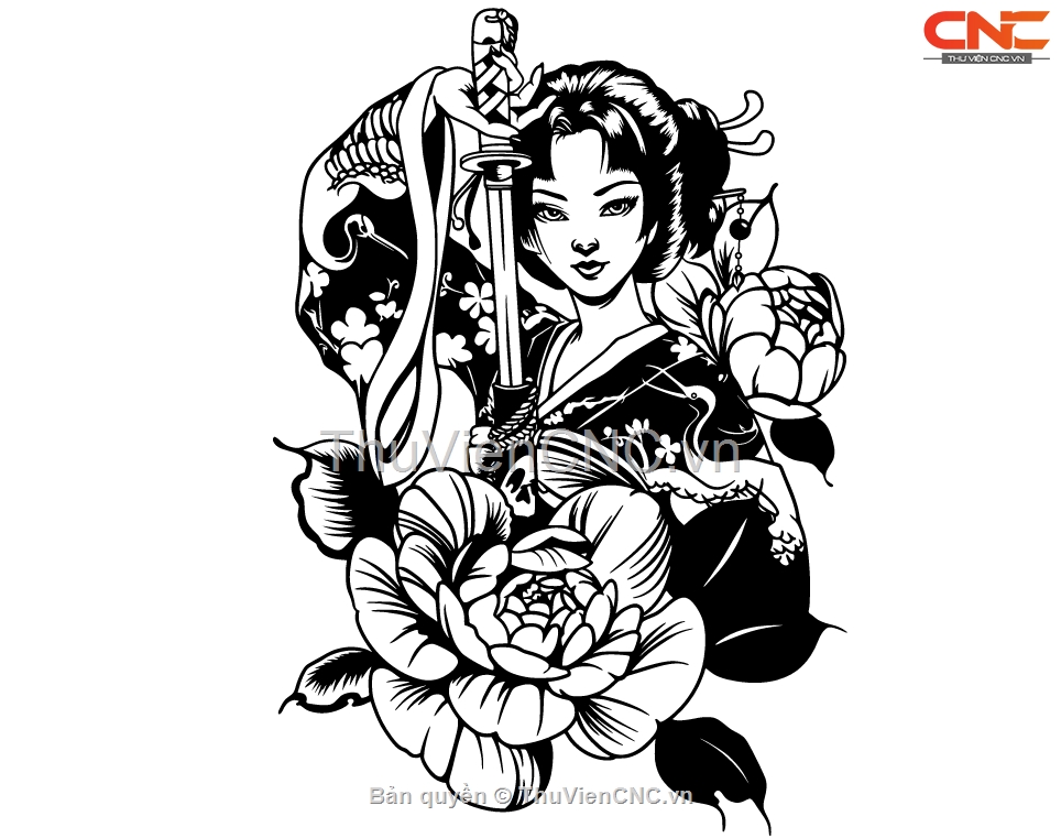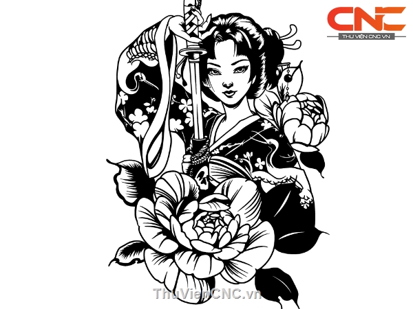 Mẫu tranh decor Geisha cnc