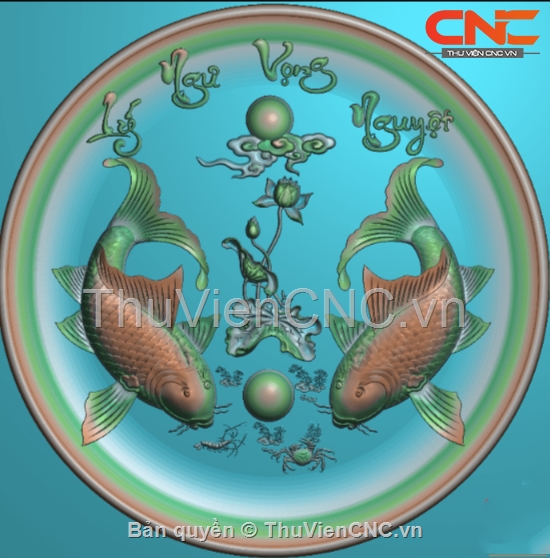 Mẫu tranh đĩa lý ngư vọng nguyệt