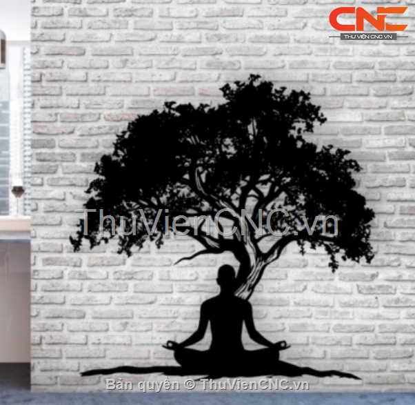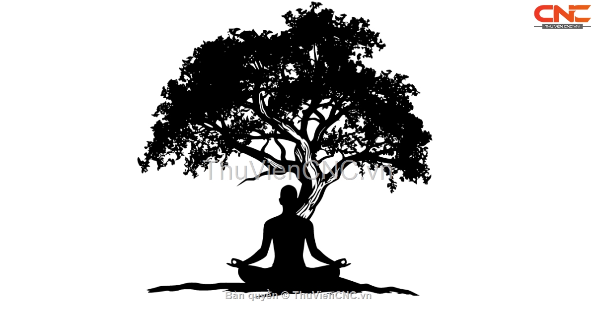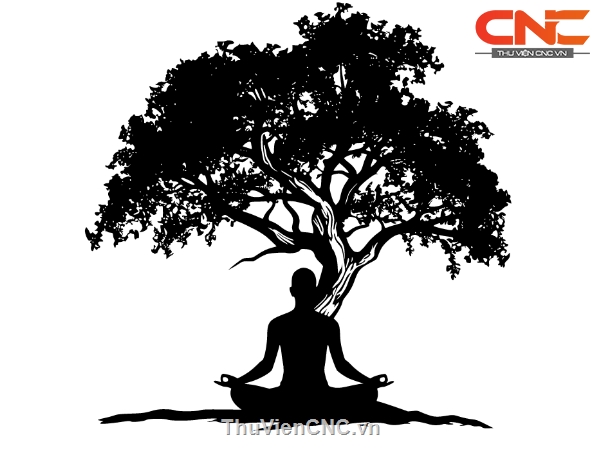 Mẫu tranh người ngồi thiền dưới gốc cây