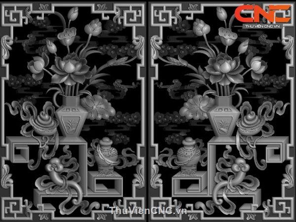 Mẫu tứ quý bình Sen cnc