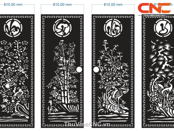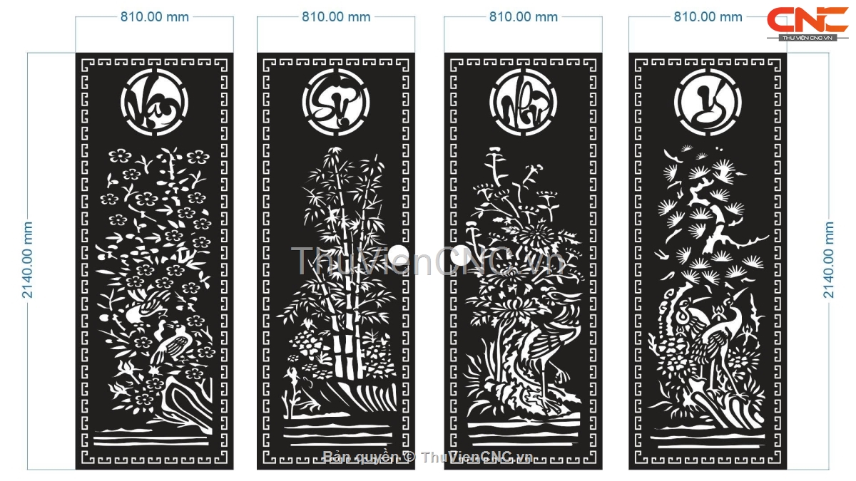 Mẫu tùng cúc trúc mai cổng 4 cánh vạn sự như ý