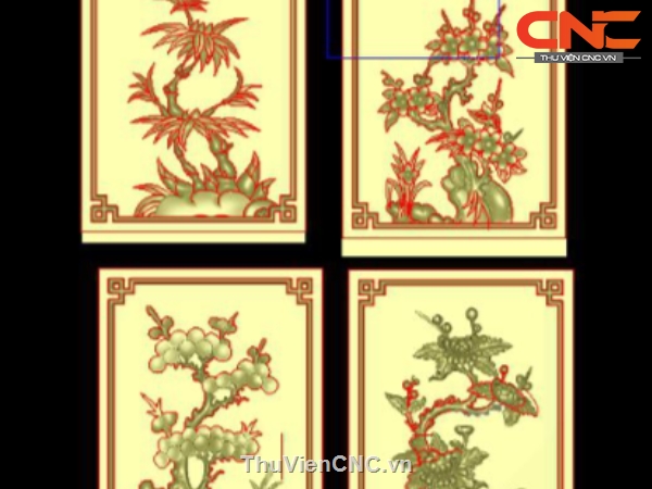 Mình xin chia sẻ file mẫu tứ quý thiết kế cực chi tiết và tỉ mỉ, để các anh chị có thể tải về để thiết kế luôn,