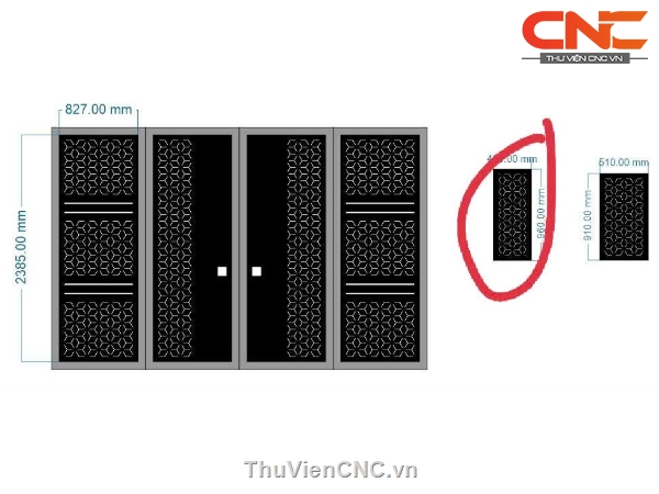 Model 2d cnc cổng 4 cánh bông tuyết dxf