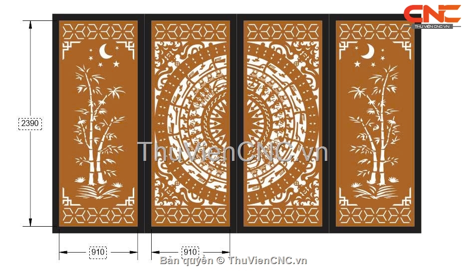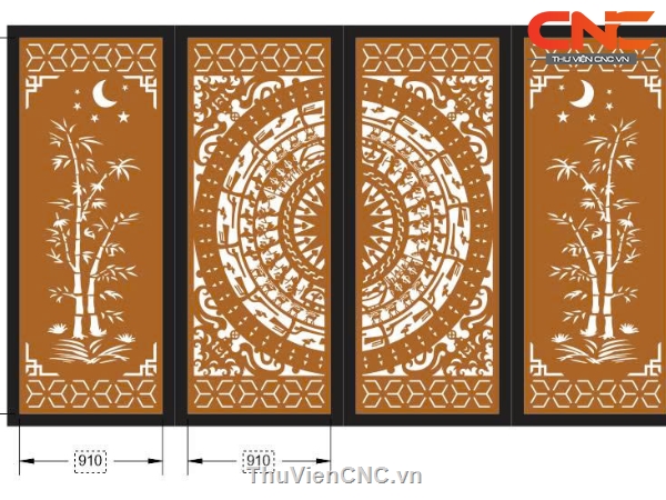 Model 2d cnc cổng 4 cánh trúc trống đồng dxf