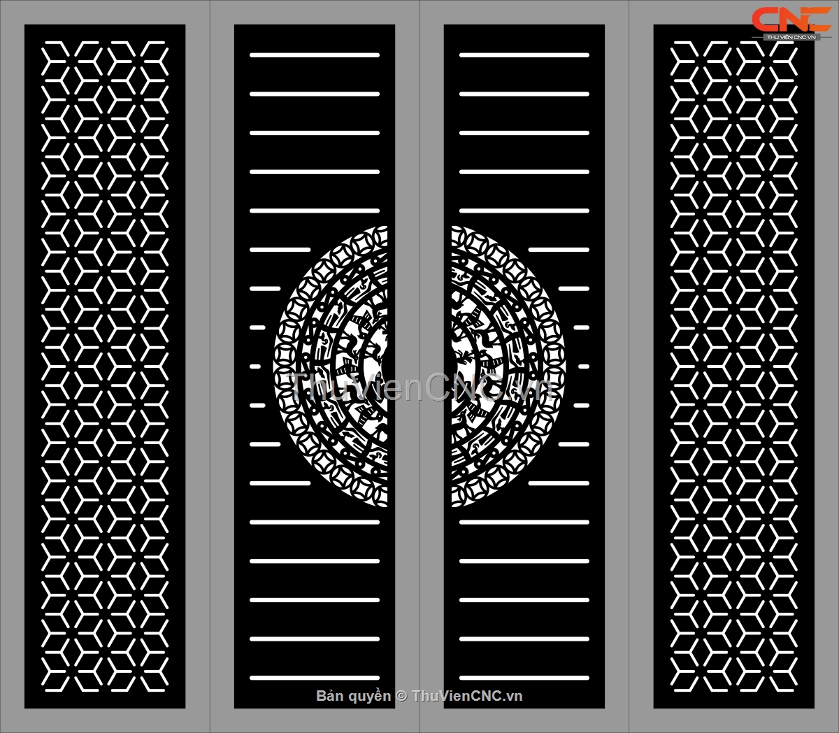 Thiết kế cắt cnc cổng 4 cánh trống đồng
