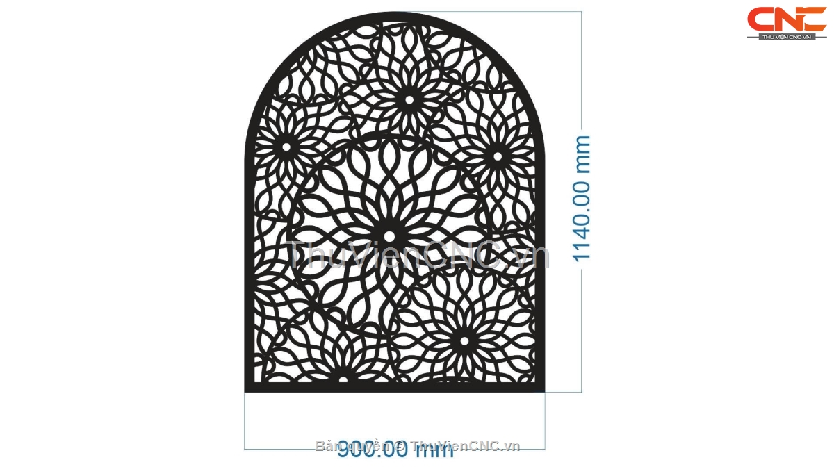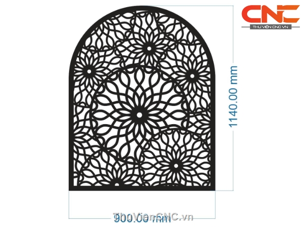 Mẫu thiết kế hàng rào hoa tròn CNC với hoa văn được thiết kế trên cad.