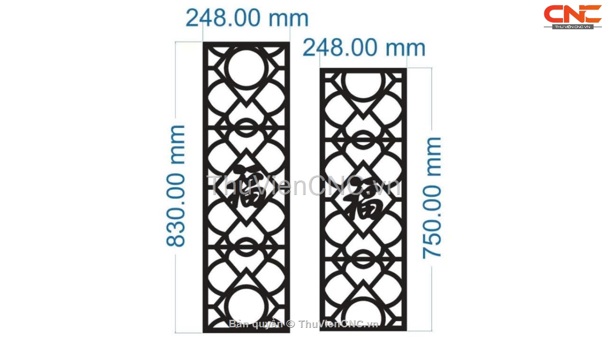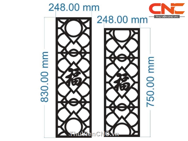 Model cnc 2 vách chữ phúc dxf