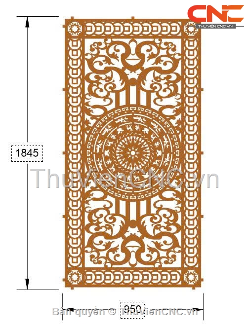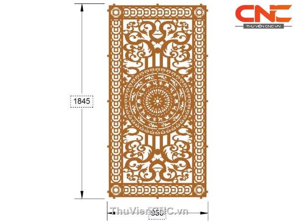 Model cnc cổng 1 cánh trống đồng viền đồng tiền
