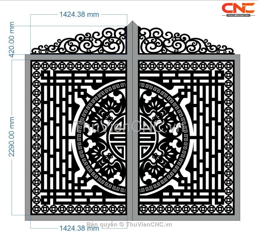 mẫu cổng cnc bản vẽ với hoa văn đẹp mắt, tinh xảo trên cad.