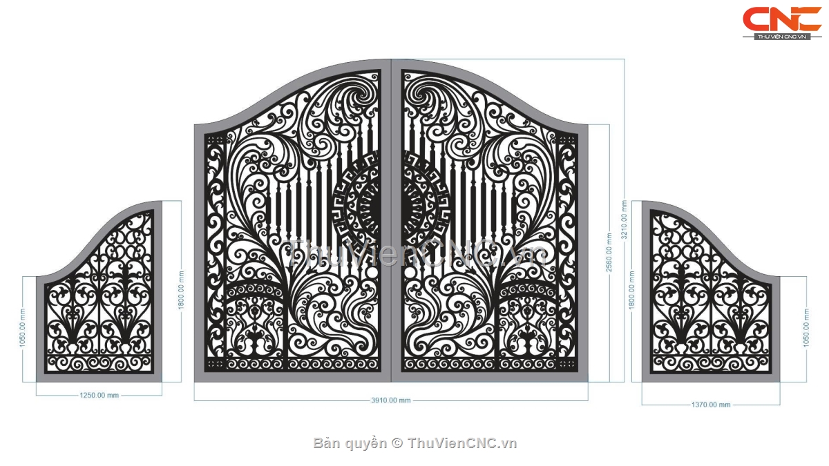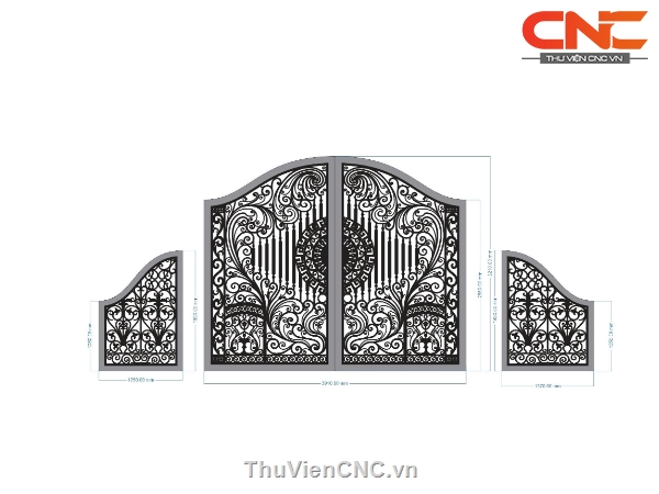 Model cnc cổng 2 cánh chính và 2 cánh phụ