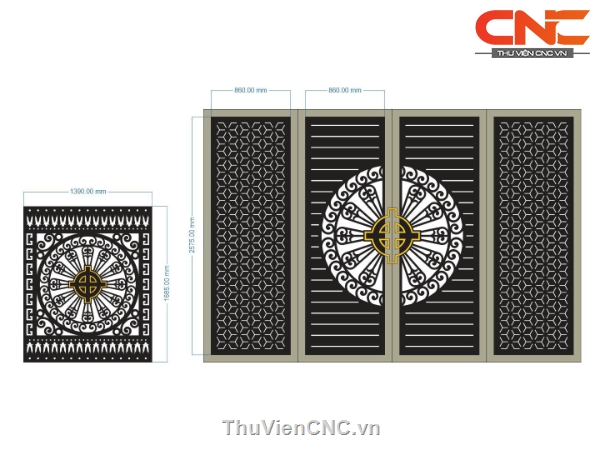Model cnc cổng 2 cánh cnc kết hợp hàng rào trống đồng dxf