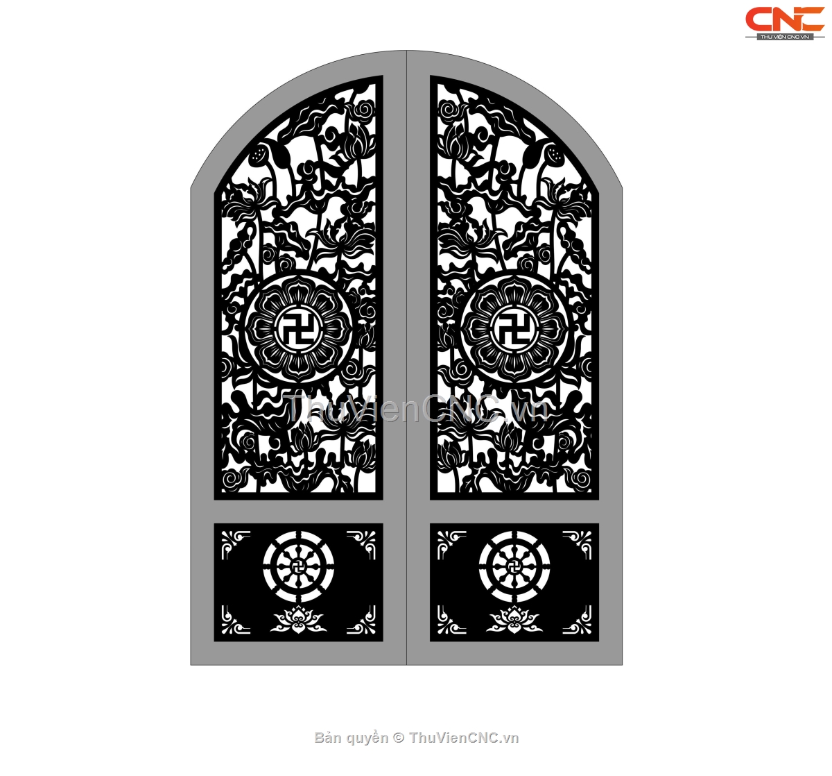 Model cnc cổng 2 cánh hoa sen chữ vạn