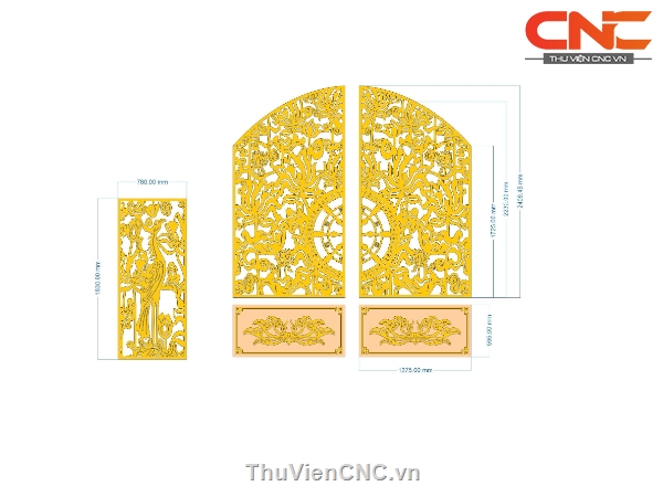 Model cnc cổng 2 cánh sen và vách hạc