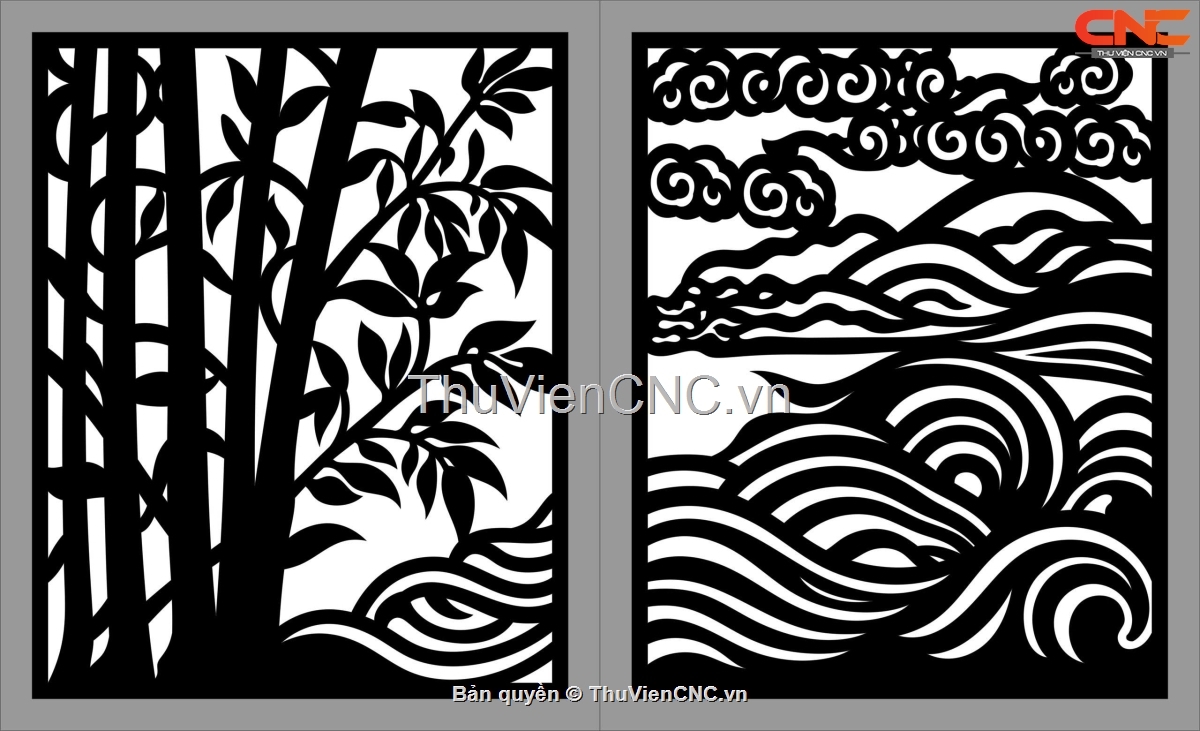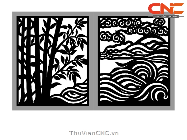 Model cnc cổng 2 cánh sơn thủy