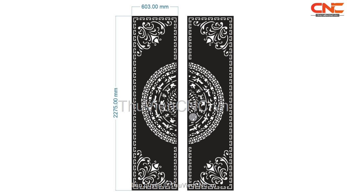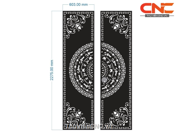 Model cnc cổng 2 cánh trống đồng có ổ khóa