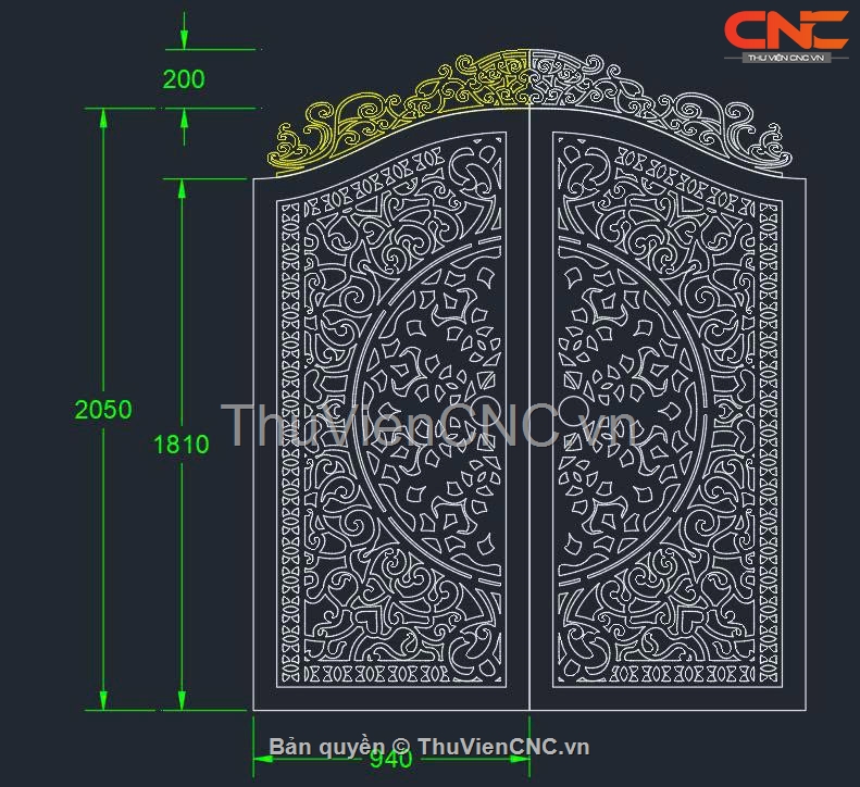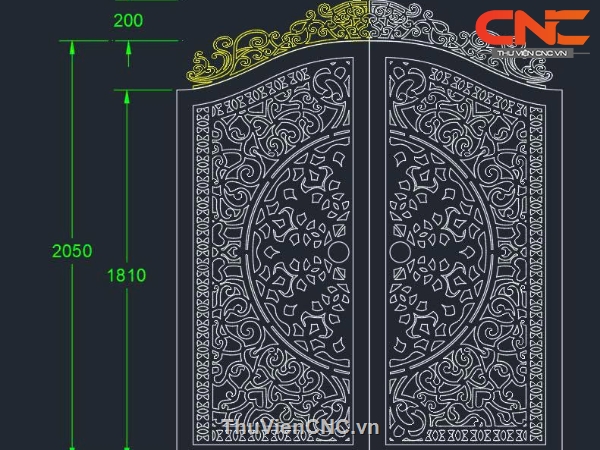 Model cnc cổng 2 cánh trống đồng có vòm