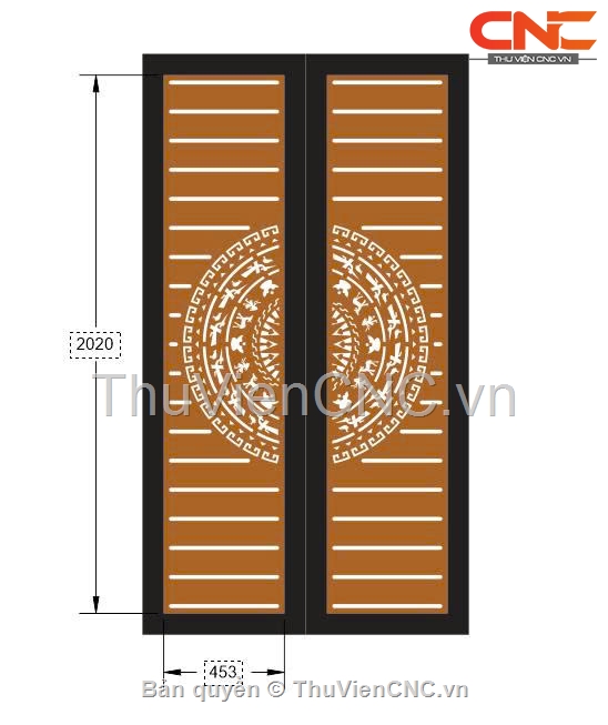Model cnc cổng 2 cánh trống đồng đơn giản