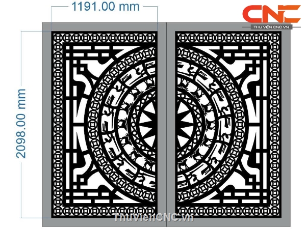 Model cnc cổng 2 cánh trống đồng dxf mới
