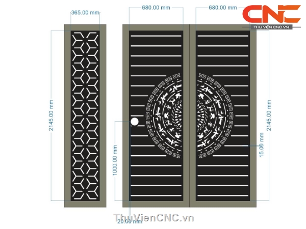 Model cnc cổng 3 cánh trống đồng và bông tuyết