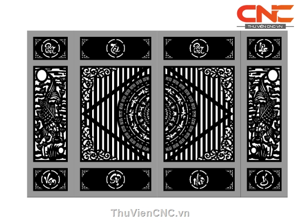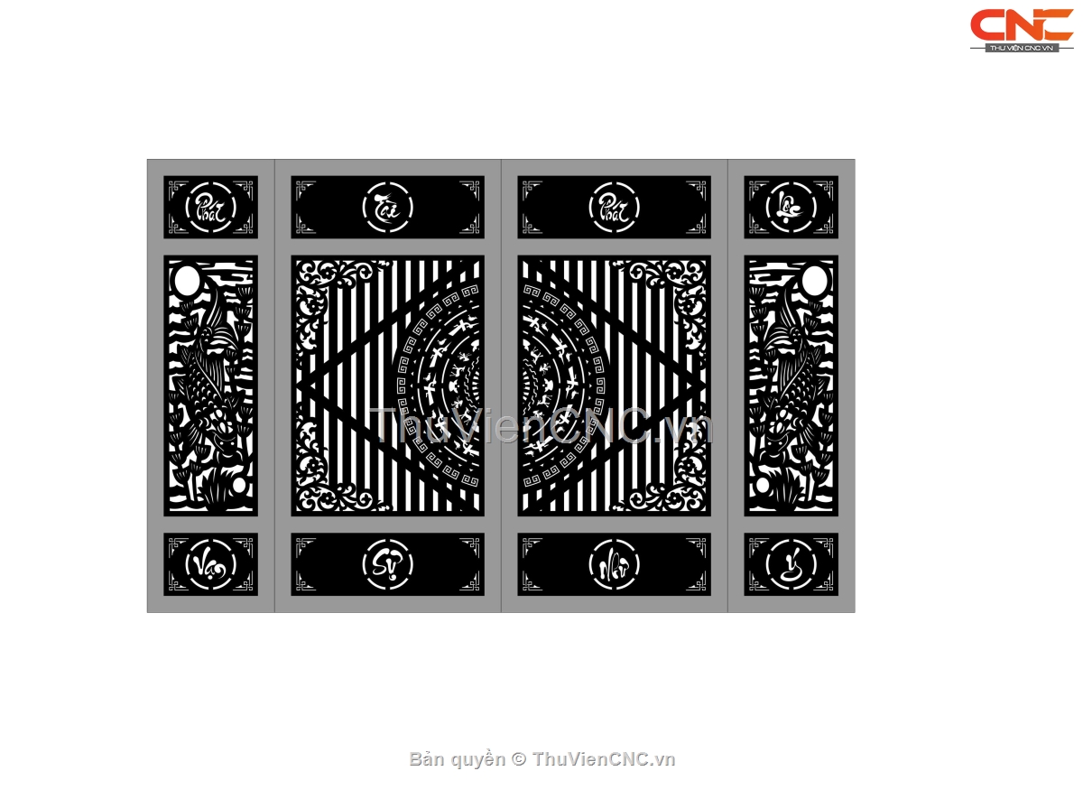 Model cnc cổng 4 cánh cá chép phát tài phát lộc