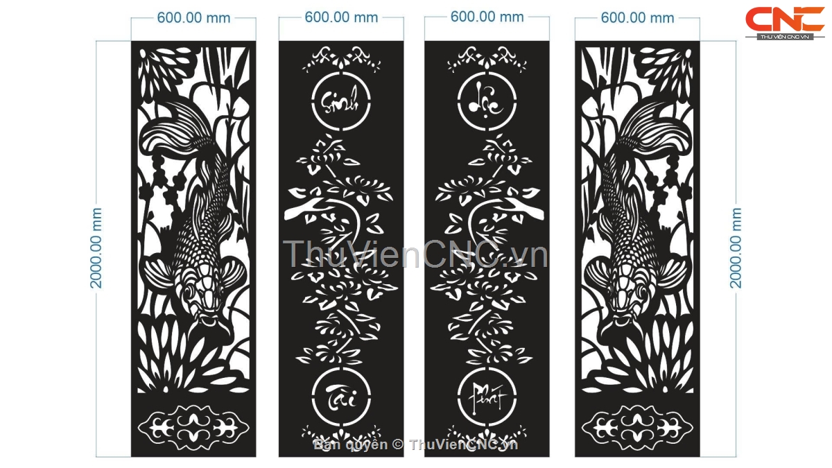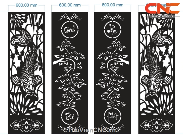 Model cnc cổng 4 cánh cá chép sinh lộc phát tài