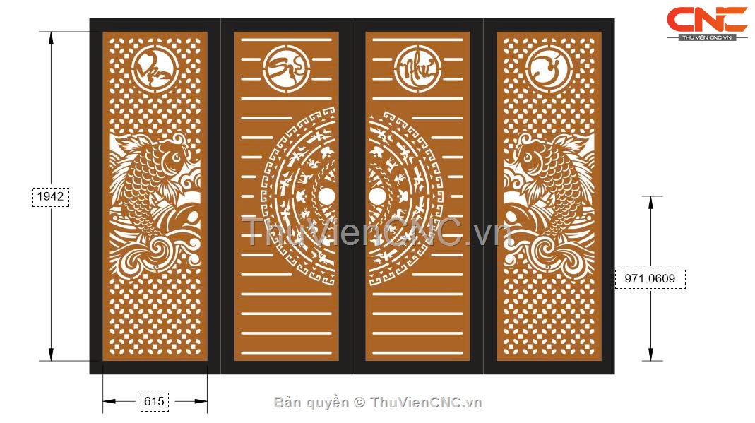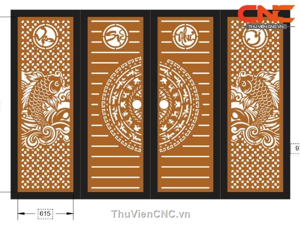 Model cnc cổng 4 cánh cá chép vạn sự như ý