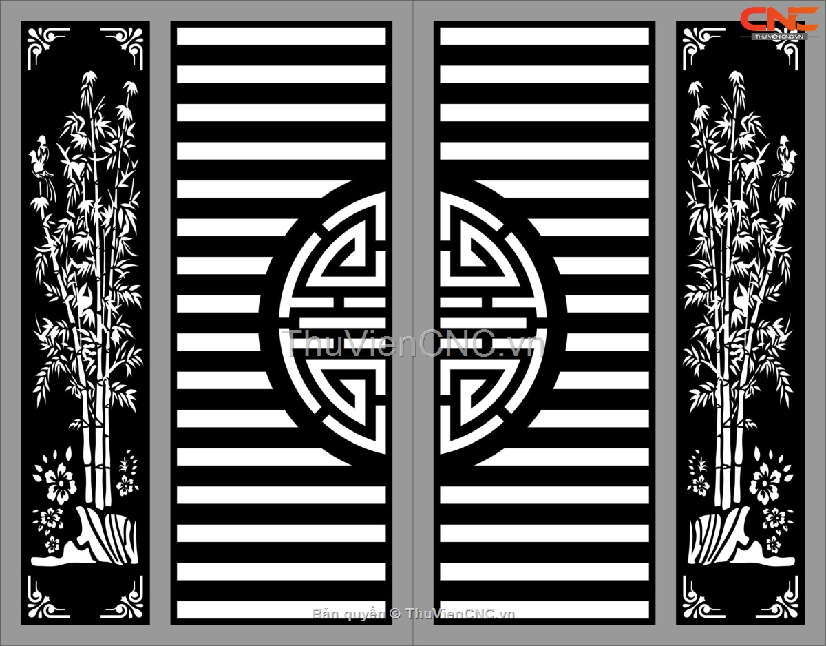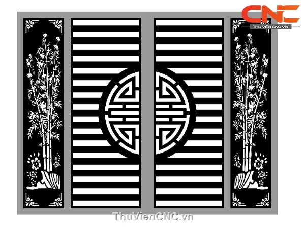 Model cnc cổng 4 cánh chữ thọ trúc