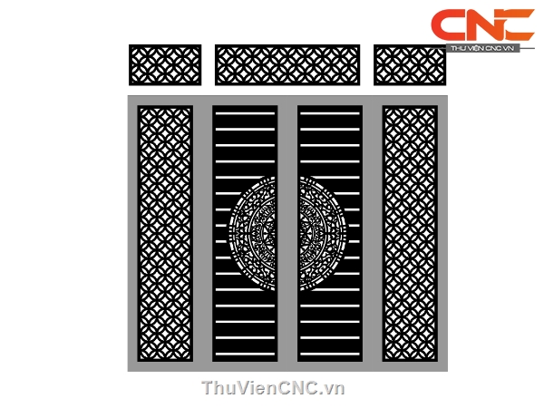 Model cnc cổng 4 cánh đồng tiền kết hợp trống